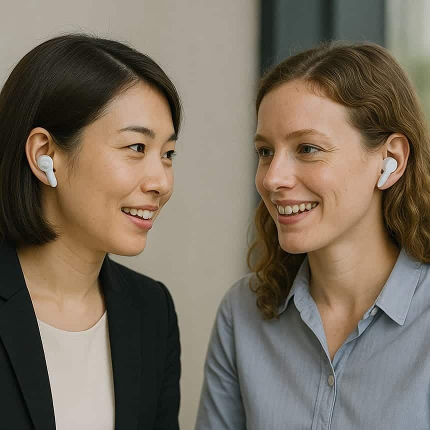 コンパクトで耳にフィットするデザイン。ノイズキャンセル・高音質スピーカー搭載で、音楽や通話も快適。翻訳を使わない日も「いつものイヤホン」として活躍します。